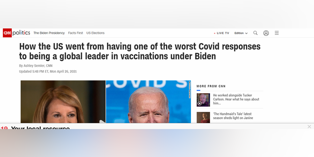 In the piece titled, “How the US went from having one of the worst Covid responses to being a global leader in vaccinations under Biden,” CNN praised the Biden administration’s “wartime effort” to get millions of Americans vaccinated.